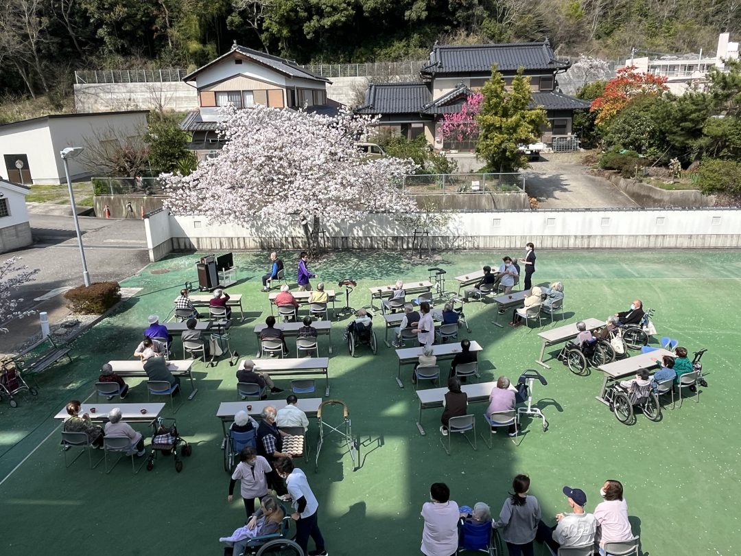 同じ建物で過ごす仲間同士、特養・ケアハウス・デイサービスの皆さまが一緒に同じ景色を共有できるのは、この施設ならではの素敵なひとときです。