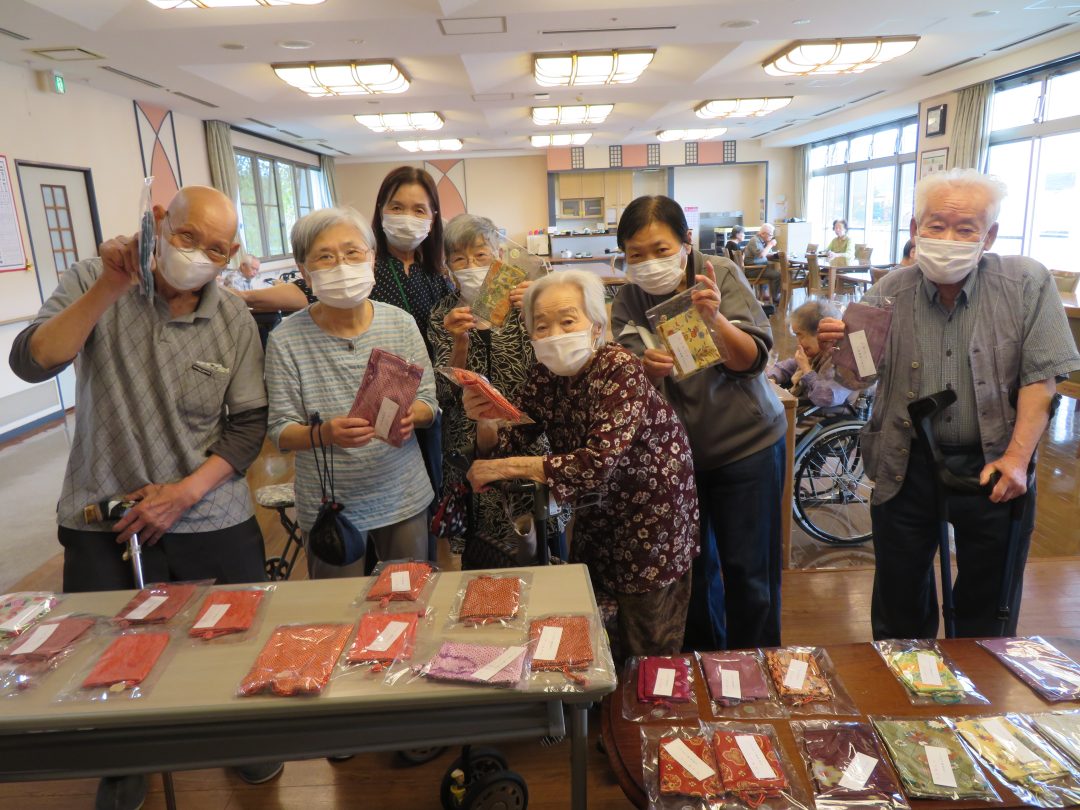 婦人会の方々が心を込めて手作りしてくださった巾着袋は、丁寧な縫製と優しい気持ちが込められており、受け取られた入居者様は皆さん大変喜んでおられました。