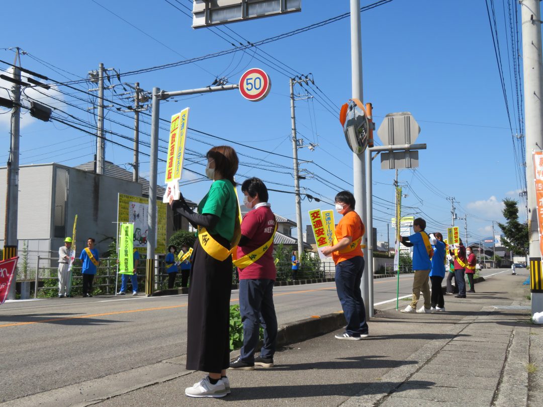 横断歩道での安全確認や、自転車・歩行者のルールについて呼びかけるとともに、通行中の方々に記念品を手渡し🎁✨。