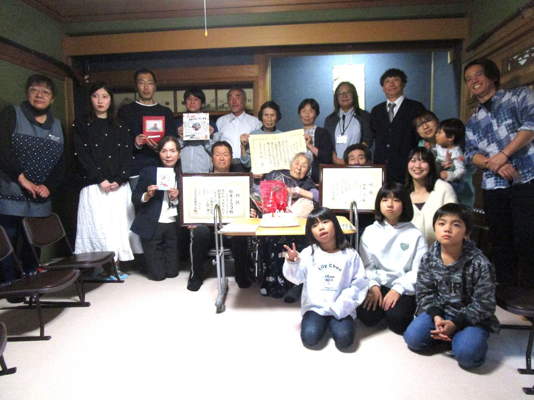 ご自宅では息子様娘様をはじめ、孫様、ひ孫様、玄孫(やしゃご)まで総勢25名が集まりお祝いを行いました。