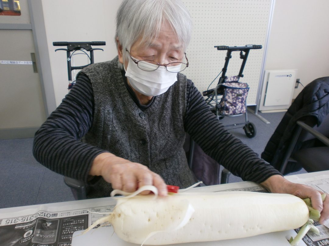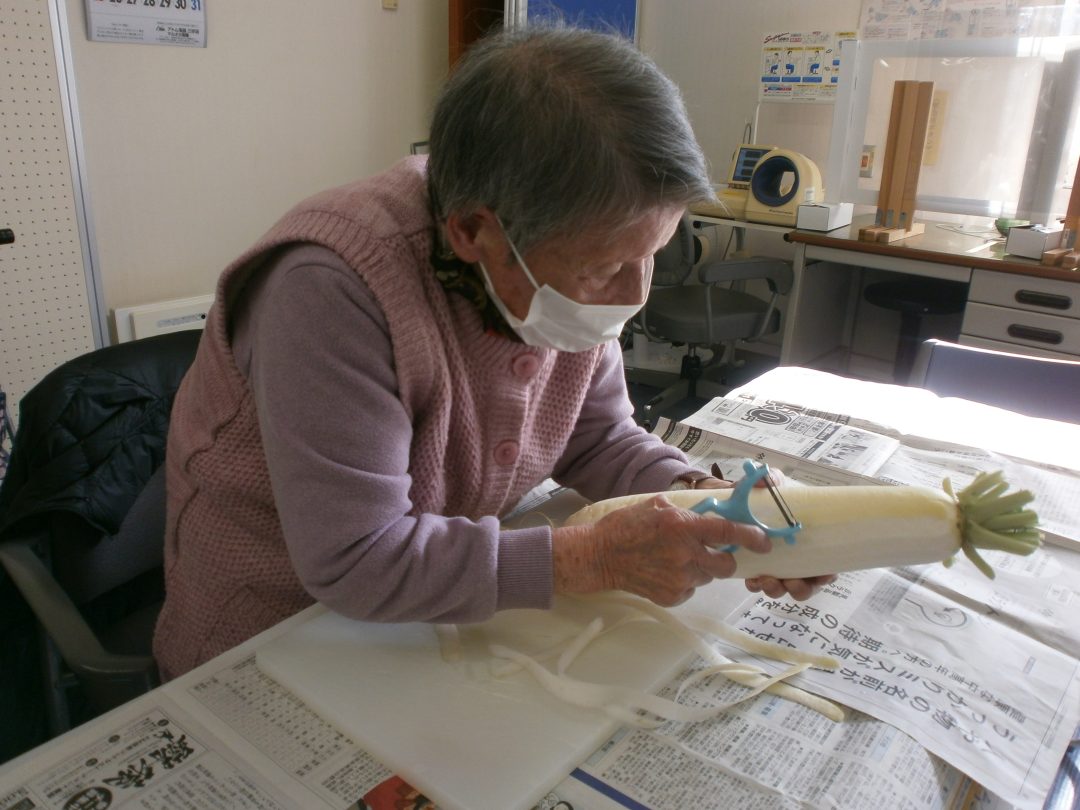 ですが、そんな心配をよそに、「昔はこうやって切り干し大根を作っていたなぁ」と、笑顔でおしゃべりをしながら、危なげなく作業を進められていました。