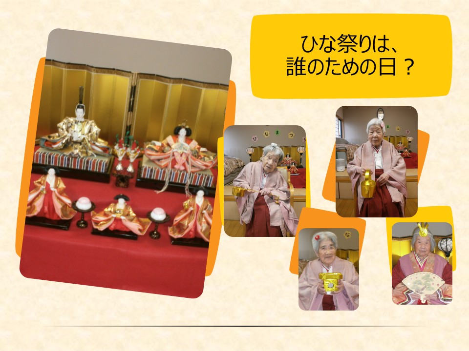 だからこそ、年齢に関係なく、これからも幸せを感じていただける一日にしたい。そんな思いで、職員一同ひな祭りの行事を企画しました。