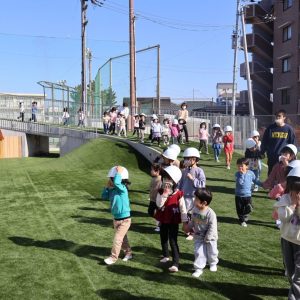 いつも使っている公園にでかけ、5歳児の子どもたちと清掃活動に参加しました。