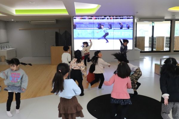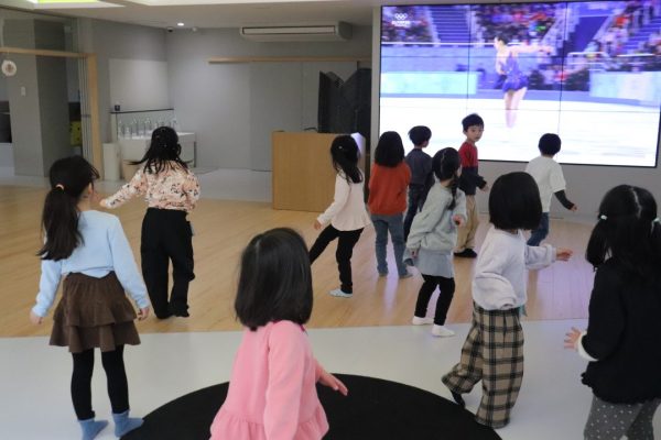 また、ミラノ・コルティナ2026冬季オリンピックの開催中には TEAM JAPAN の方々の活躍に子どもたちも一喜一憂しました。大画面で見るフィギアスケートの迫力に、一緒にスケートをしているかのよう。選手がジャンプをすると、子どもたちもクルっと回って~。「難しいなぁ」と言いながらも、何度も挑戦する姿を見ると未来のオリンピック選手を思わせるかのようです。