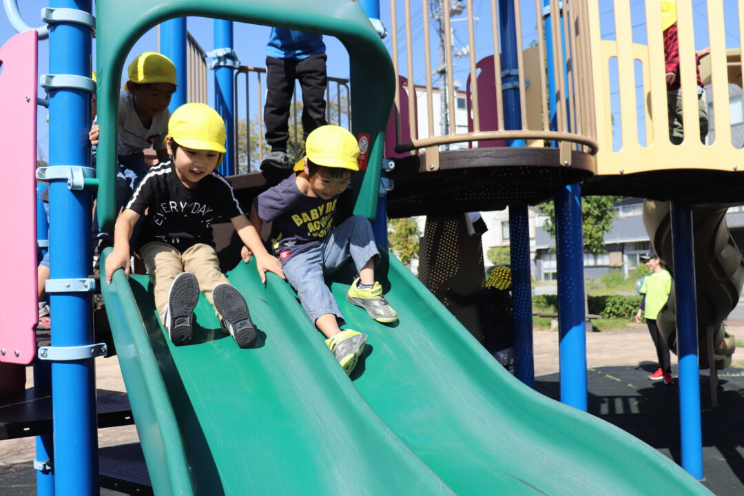 わくわくしながら育英からの道を歩いてきた子どもたち。早めの到着!遊覧時間まで少し時間があったので近くの公園でEnjoy Time!