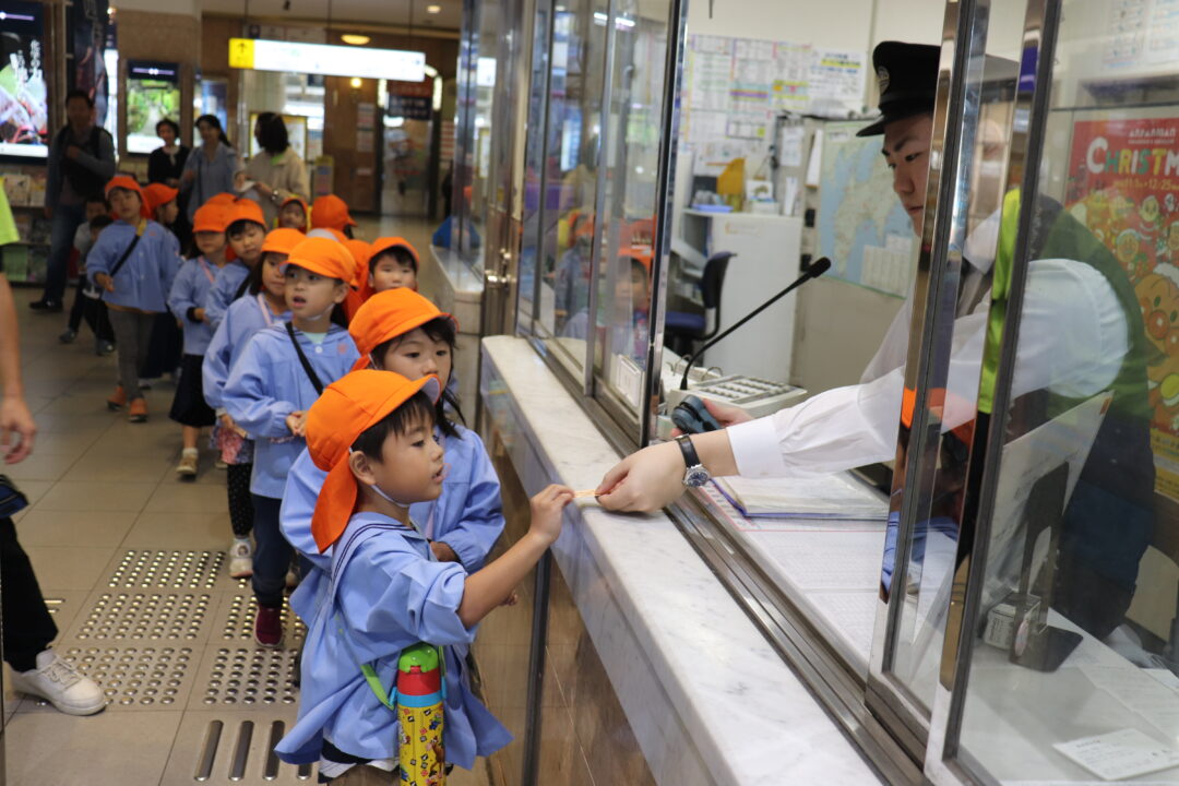 初めて汽車に乗る子どもが多く、どちらから汽車が来るのか、何色の汽車なのか友だちと予想している姿やドキドキを隠しきれず切符を持つ手に力が入り汗をかいている様子も見られました!