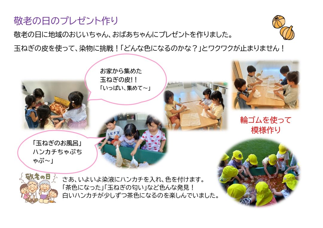 敬老の日のプレゼント作り~玉ねぎの皮染めに挑戦~