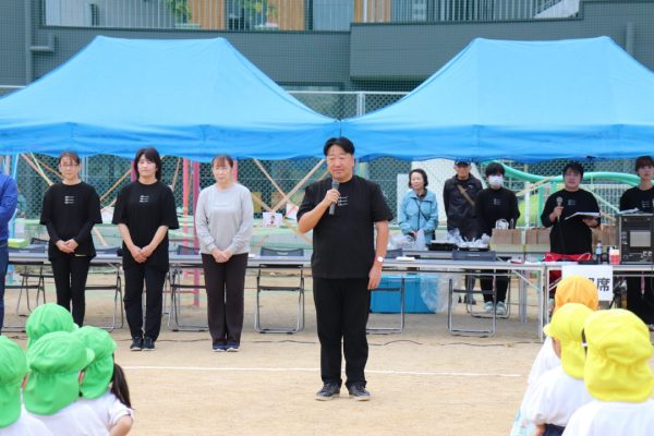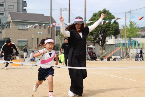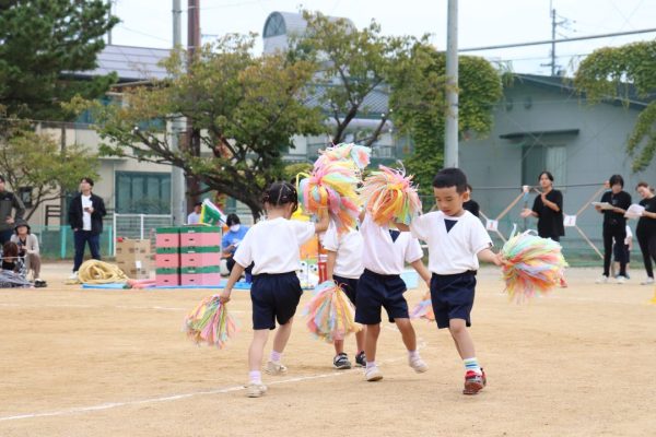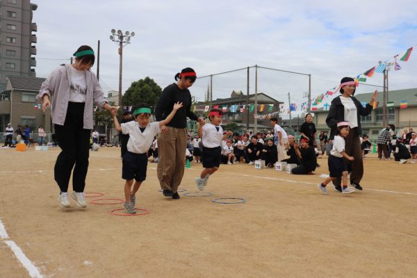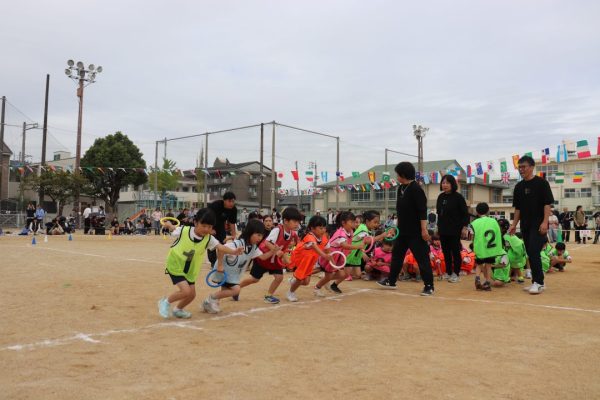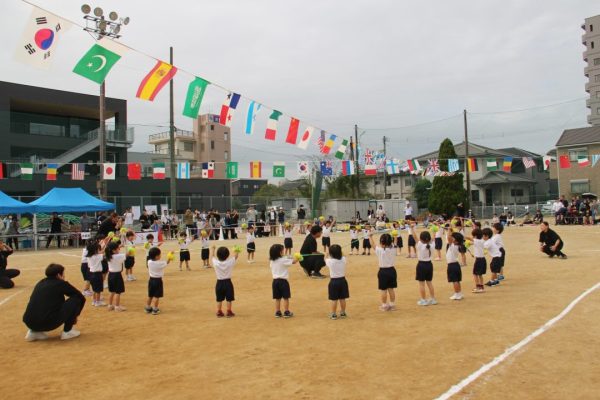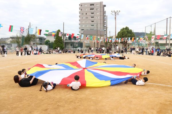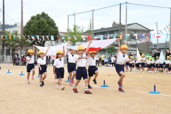 雨の予報でしたが、子どもたちのパワーが届いたのか曇り空の涼しい気候の中で運動会を開催することができました。地域の小学校の校庭をお借りして、広々とした環境で思う存分体を動かし、友だちと力を合わせて頑張りました。今年のテーマは『みんなでつながる いくえいの和・輪・環」4月から新しい場所で、仲間と力を合わせていろいろなことにチャレンジする中で、思いやりや助け合いの心を育み、クラスを超えて、全園児、保育者、保護者が一つの輪となってつながり、みんなで一つになって楽しむ運動会にしたいという想いを形にすることができました。