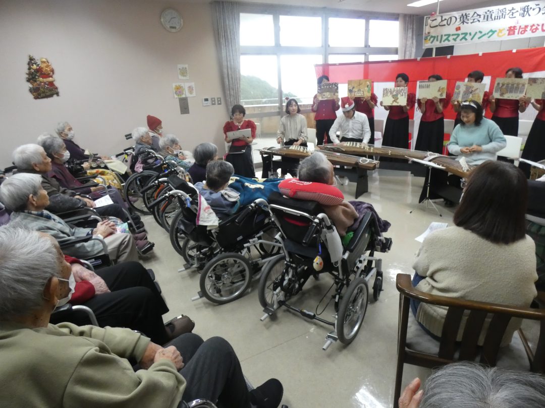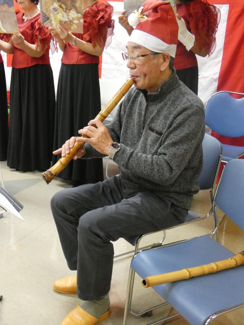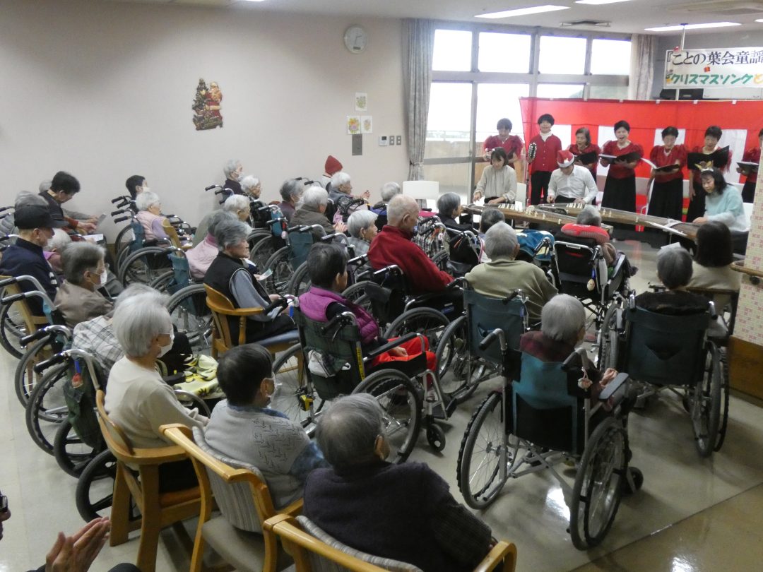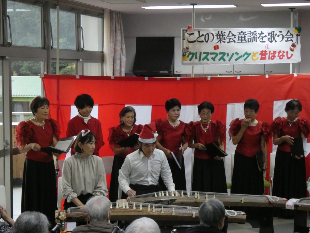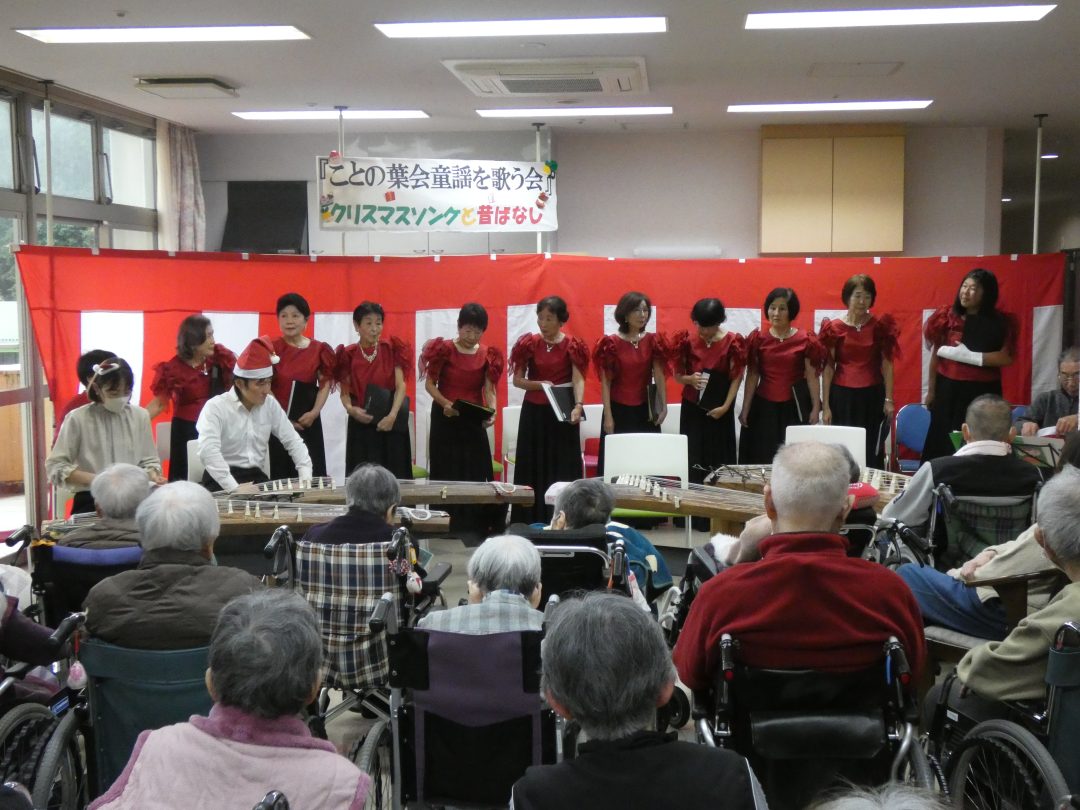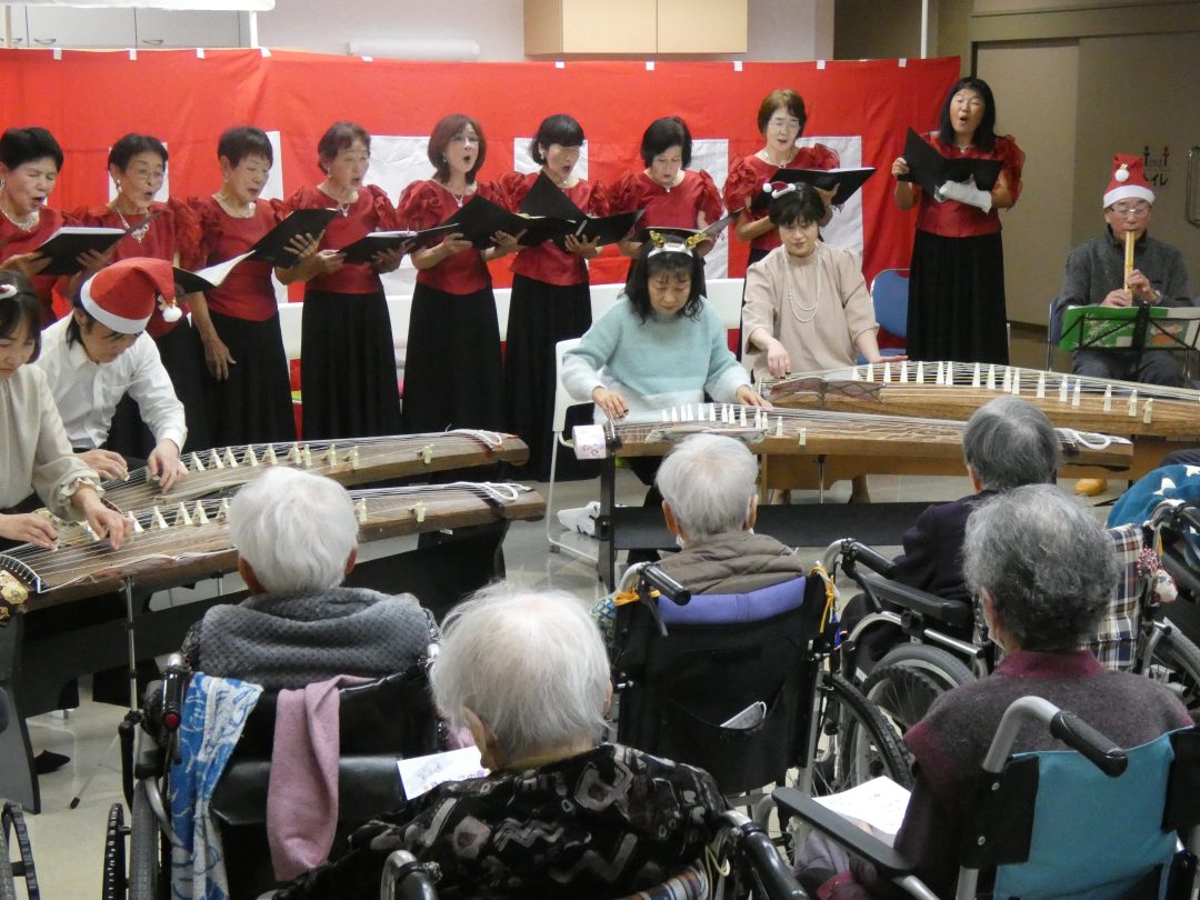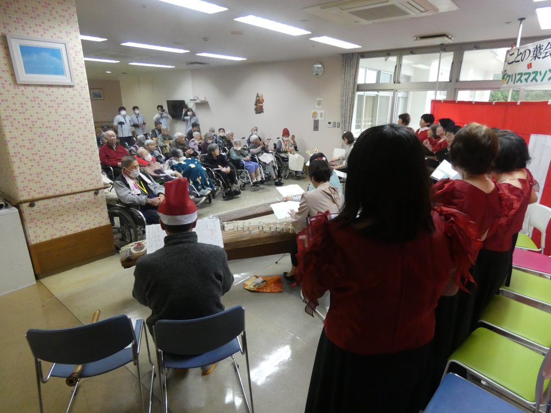 尺八、ことの葉会による琴、そして「童謡を歌う会」たんぽぽのコーラス隊の皆様が来設され、ひと足早いクリスマスの雰囲気を届けてくださいました。