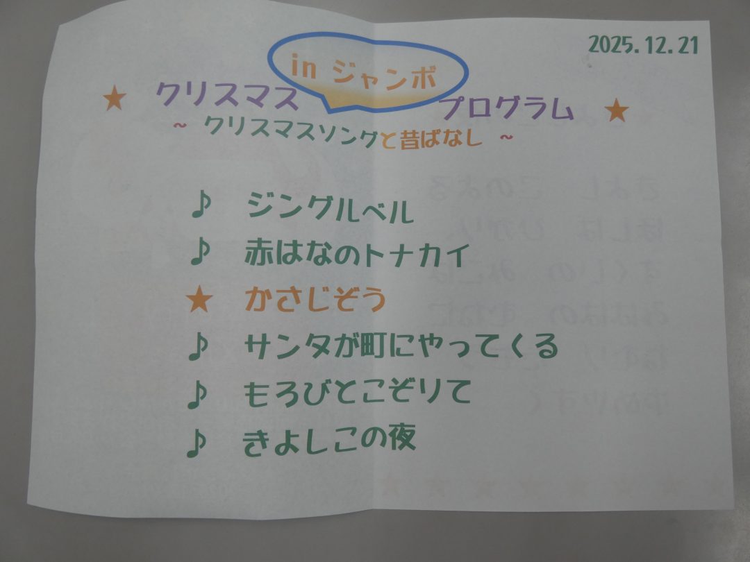 クリスマスソングや昔話にまつわる歌が披露され、懐かしさと季節感が入り混じった心地よい時間が流れました。