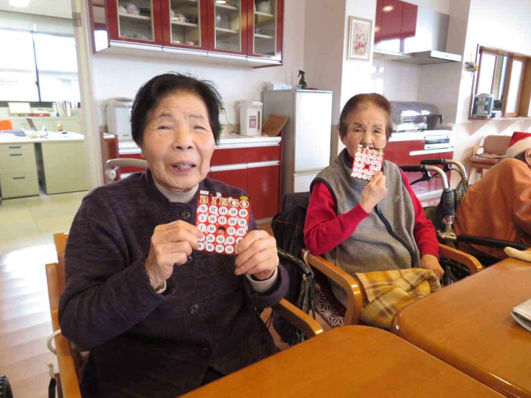 今回のクリスマス会のレクリエーションは、皆様お楽しみのビンゴゲームです。