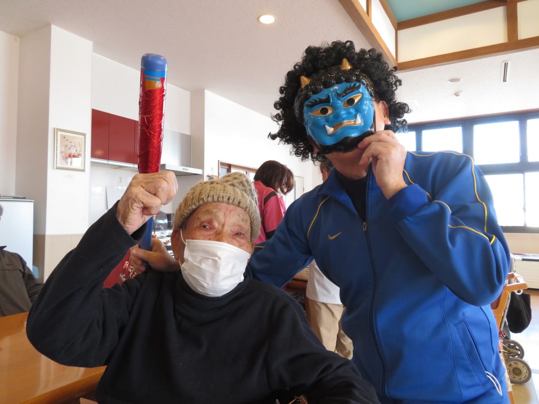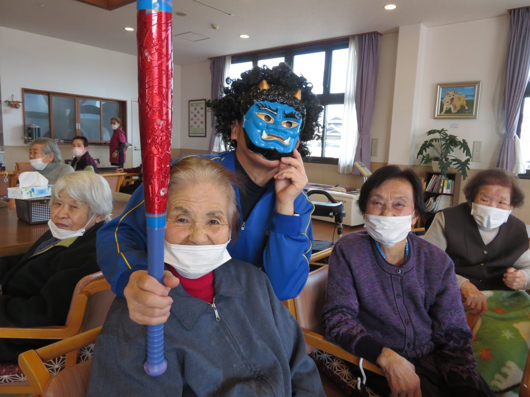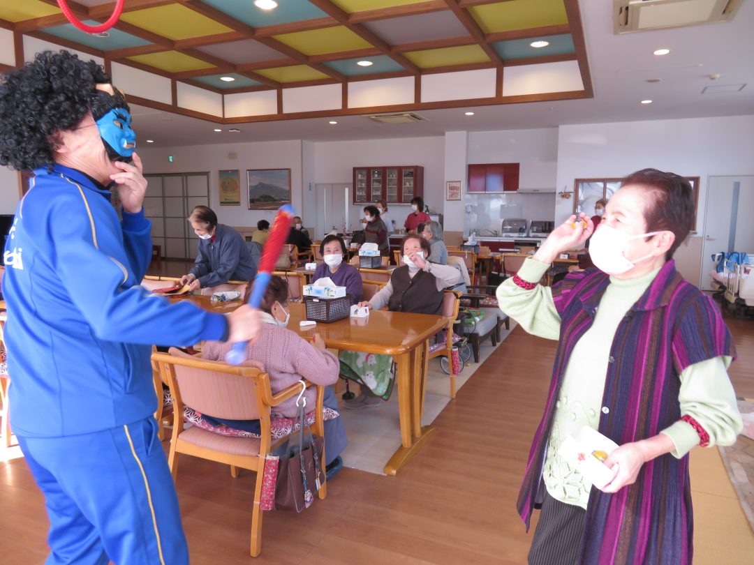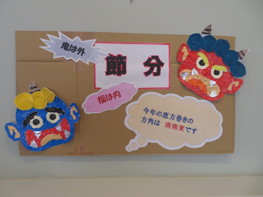 こんにちは!デイサービスセンターお龍です。 2月3日は「節分」ですね。暦の上では「立春」ということで、翌日から春ですが、まだまだ寒い日が続いていますね。そんな寒さを吹き飛ばすべく、当施設では今年も全力で豆まき行事を開催いたしました!
