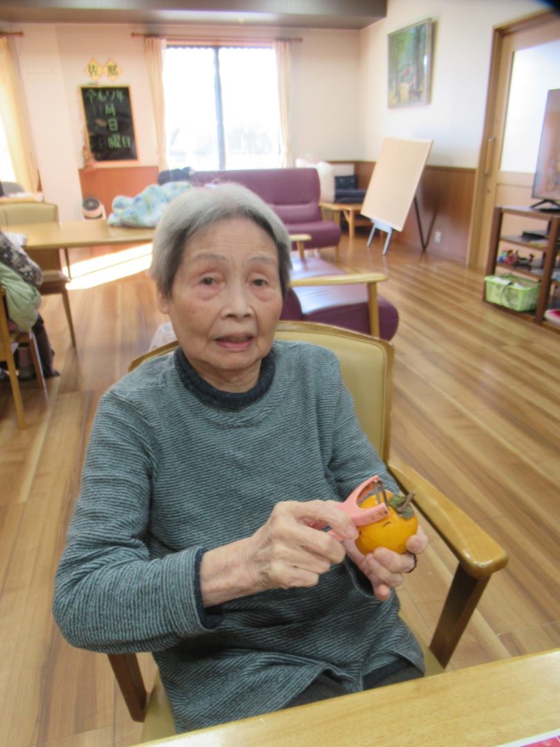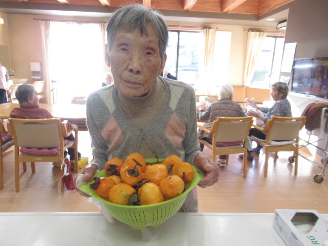 先日、グループホーム加尾のレクリエーションとして、干し柿作りを行いました。