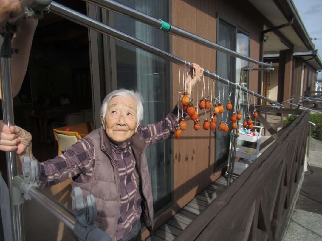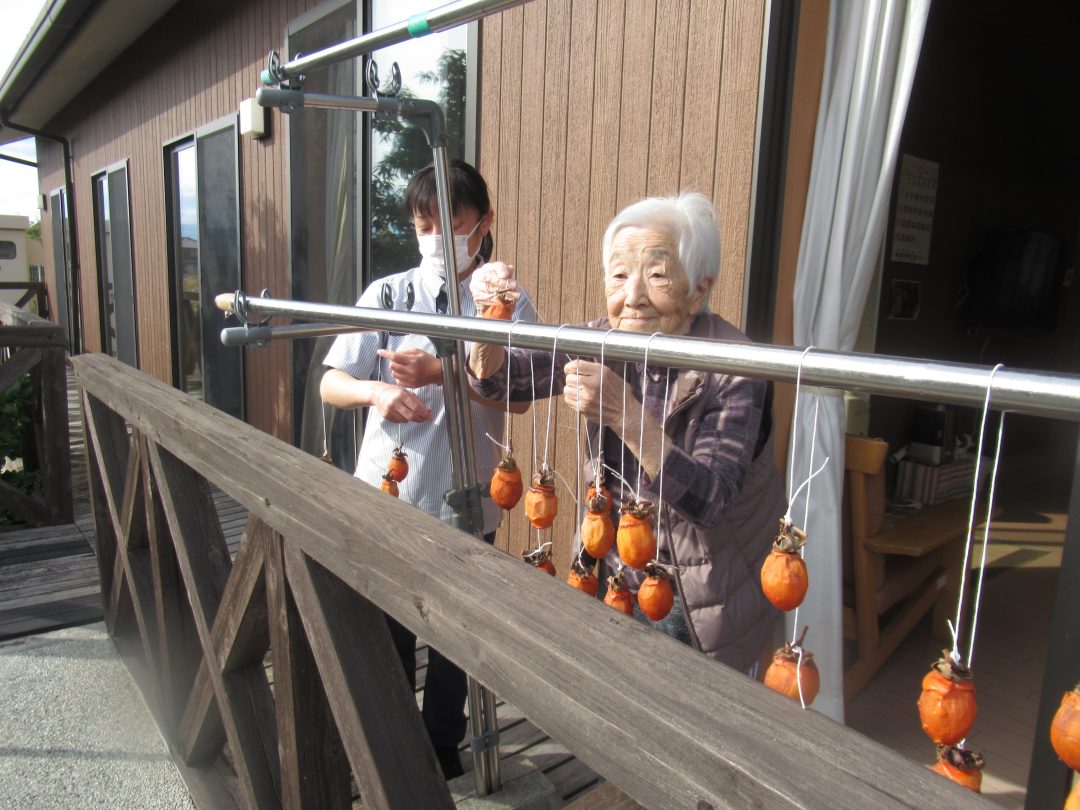 干し柿作りは秋の風物詩として親しまれており、入居者様の皆さんにとって、昔ながらの