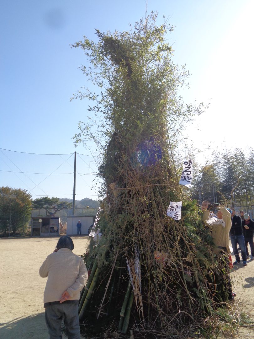 樫田小学校で行われた『とんど焼き』に、みんなが書いた絵馬を持って行きました😊