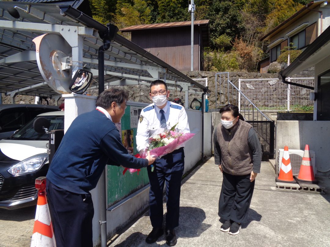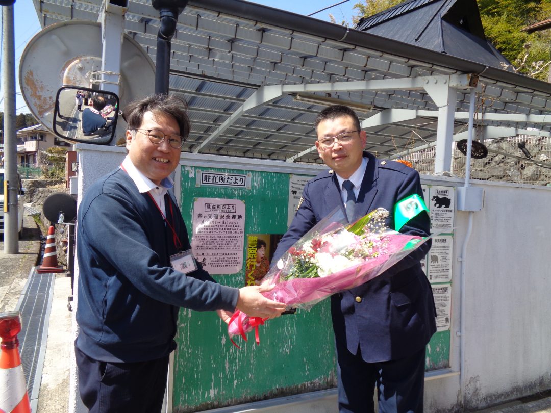 この度、10年の長きにわたり地域の安全を見守ってくださった駐在所の警察官の方が、3月で異動されることになり、