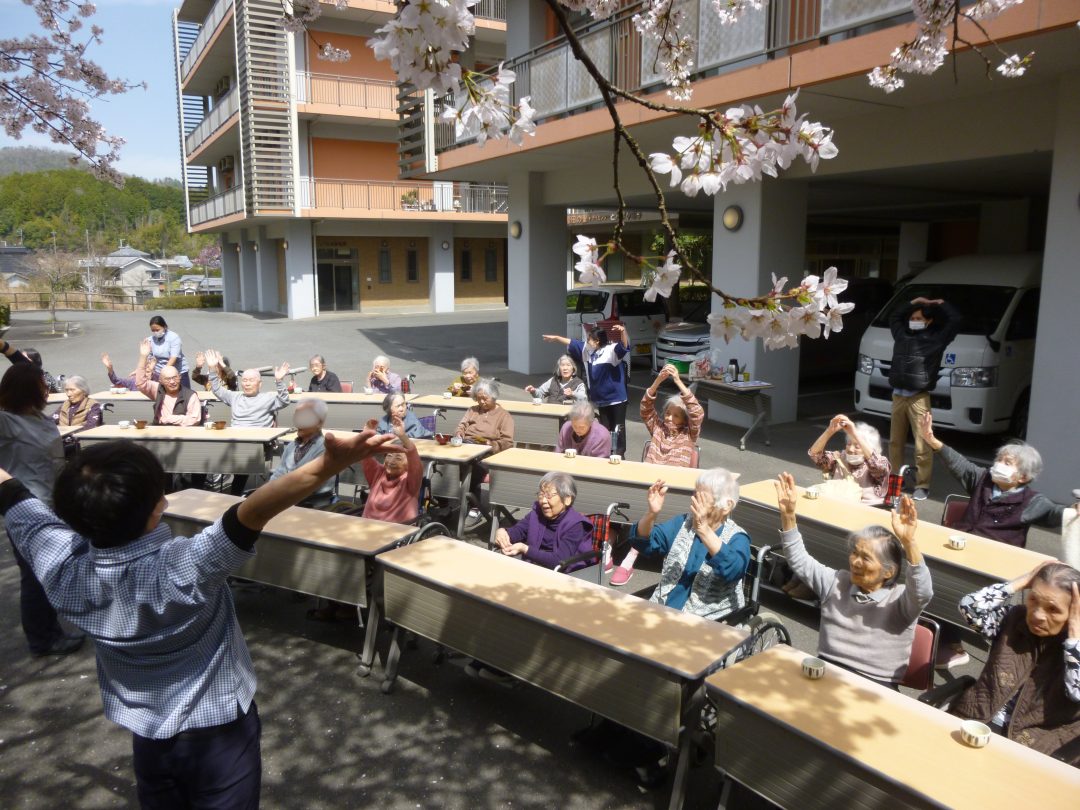 桜の木の下で体操をしてみたり