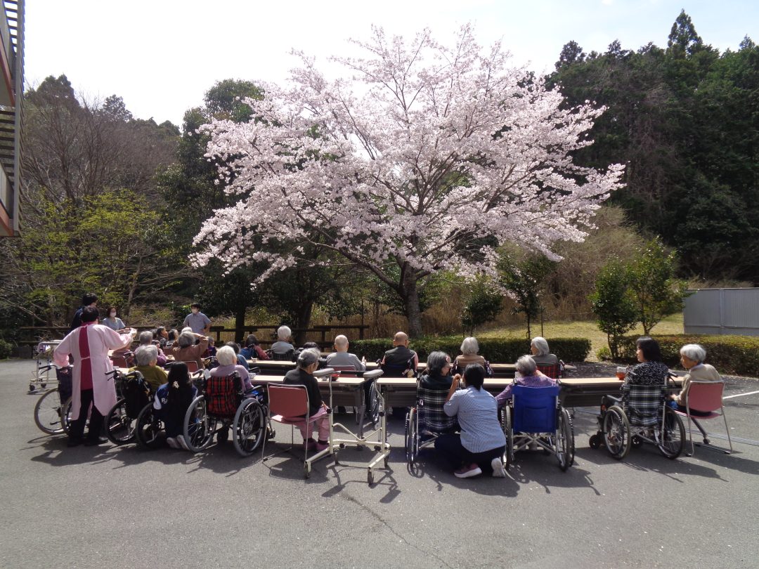 樫田の里の敷地内の大きな桜の木が満開になったタイミングで、無事にお花見をすることができました\(^o^)/