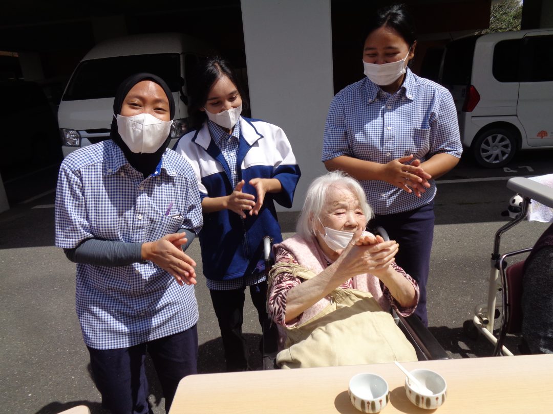 ご機嫌になり歌をうたったり🎵お茶とぜんざいを一緒に楽しみました♡