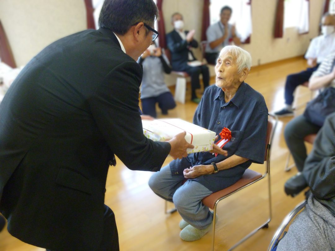 式典では、白寿の方3名、米寿の方8名、そして喜寿の方1名に記念品の贈呈を行いました。