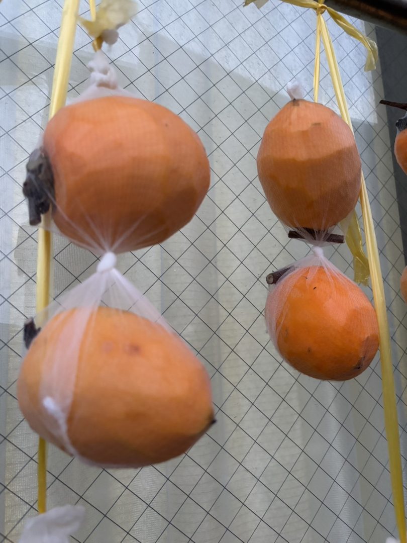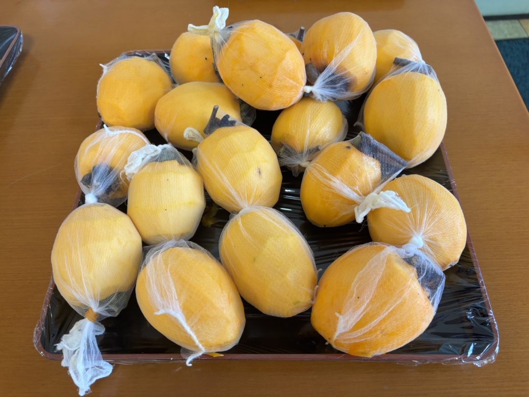 そこで、職員が渋柿(しぶがき)を持って来てくれました🙏