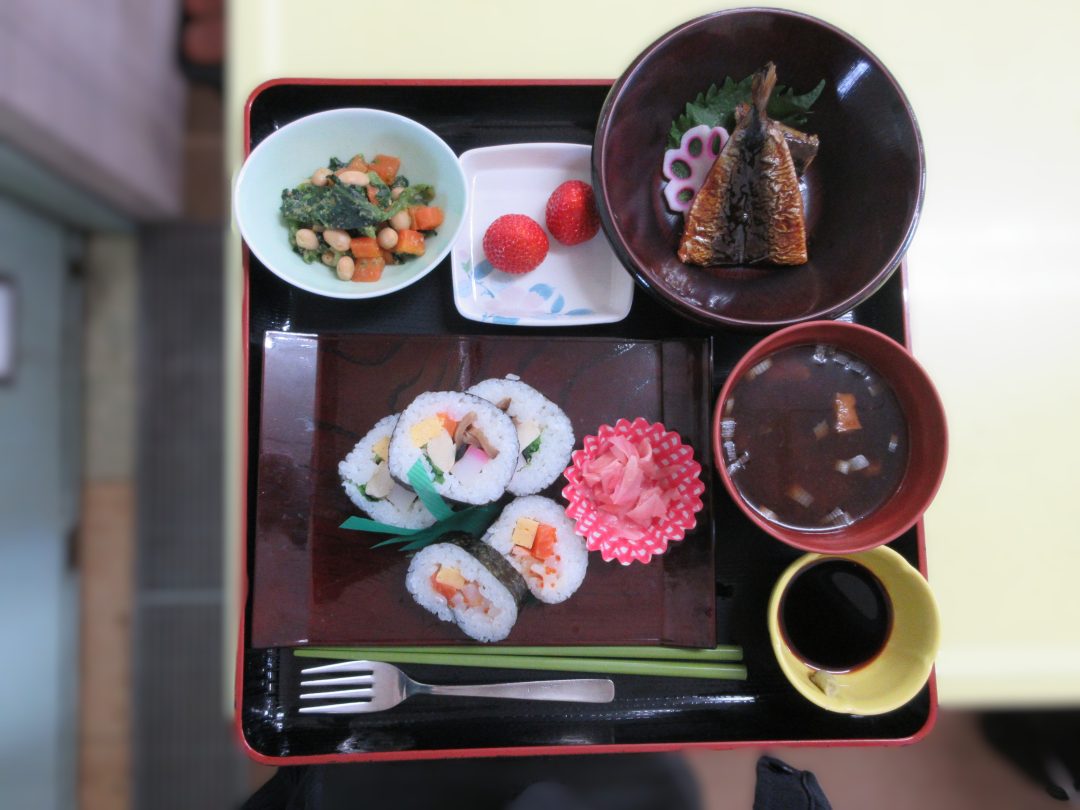 昼食は巻き寿司イワシの蒲焼が出ました(^^)