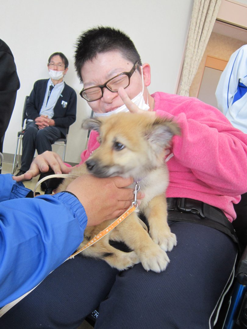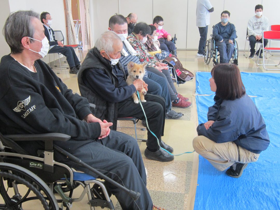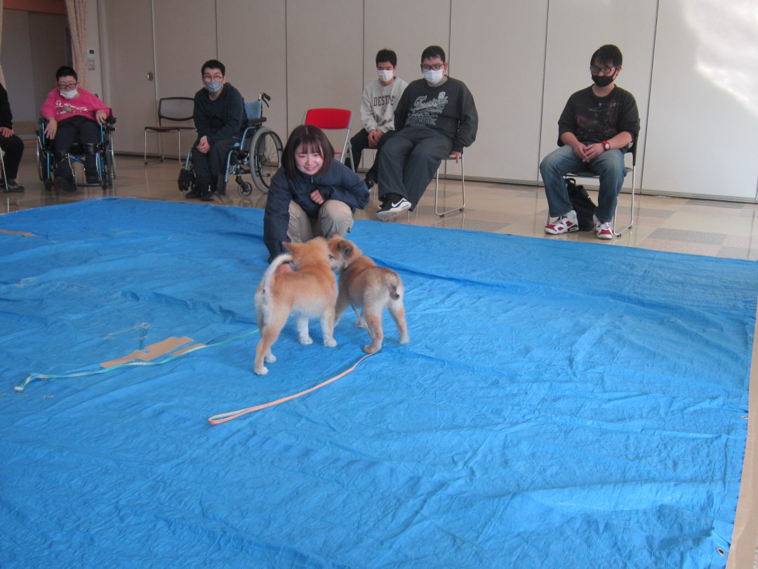 某日、健祥苑授産センター金太郎で『アニマルセラピー』を開催しました。🐶✨