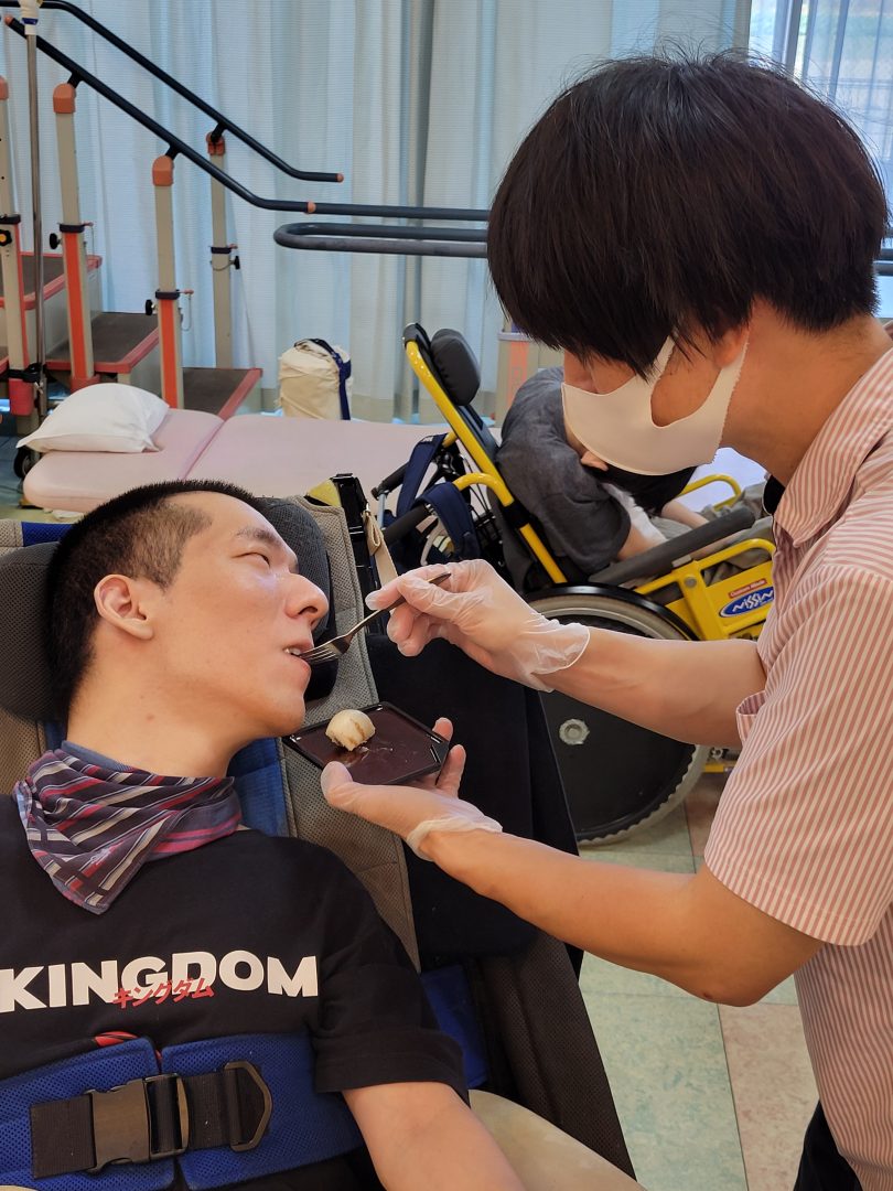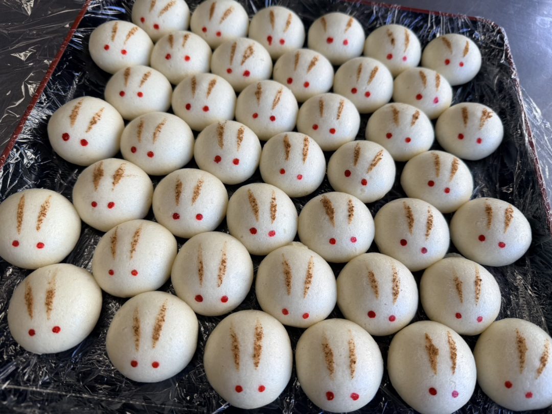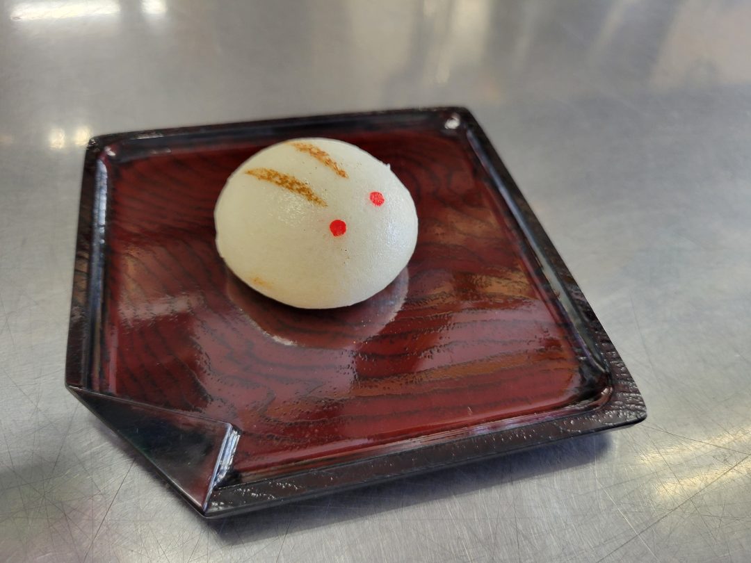 昨年、お隣の施設健祥会モルダウで中秋の名月の日に「うさぎ饅頭」のおやつを出されたみたいで、今年は健祥苑の管理栄養士さんが作り方を聞いて創作してくれました(^^)/