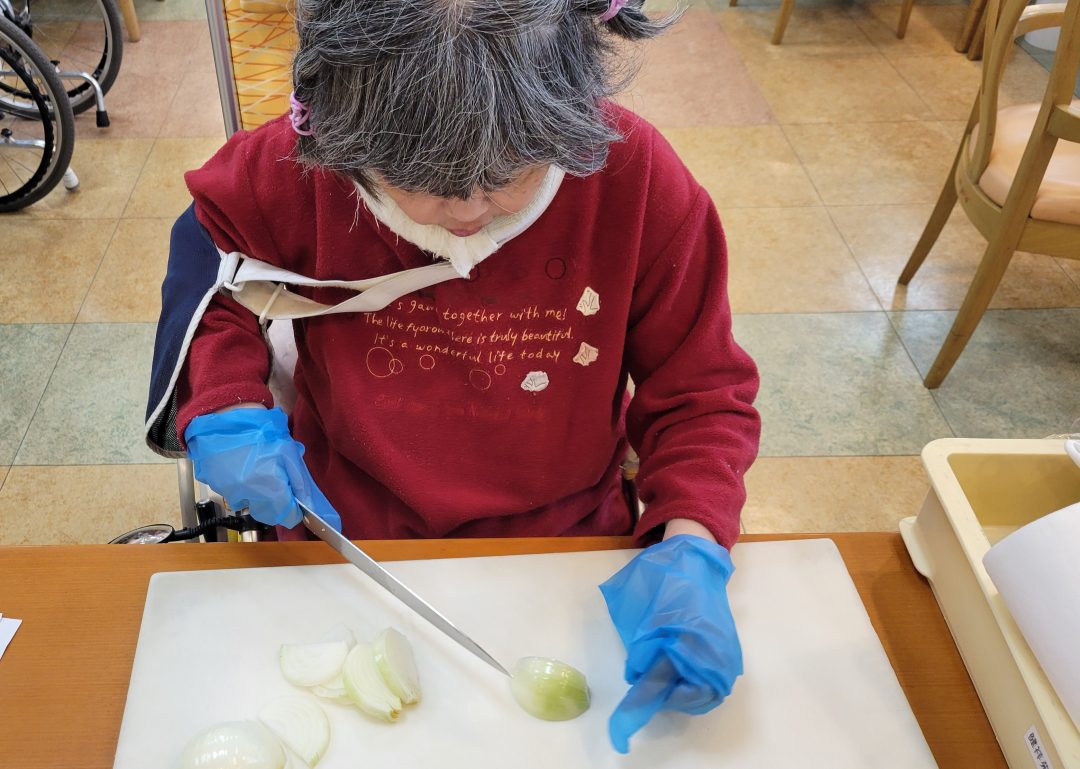 玉ねぎのみじん切りやバターで炒める作業も利用者様が手伝って下さいました(^^)/