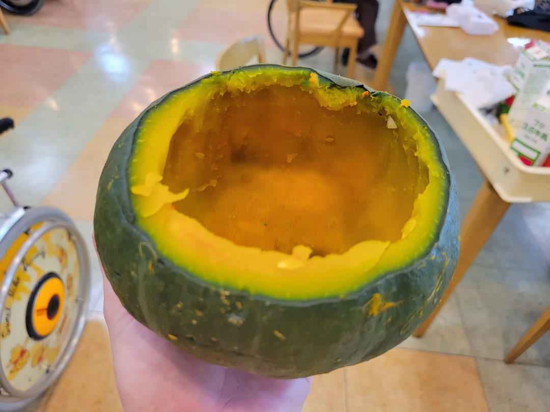 健祥苑のデイサービスでは、パンプキンスープを利用者の皆様と一緒に作りました(^^)/