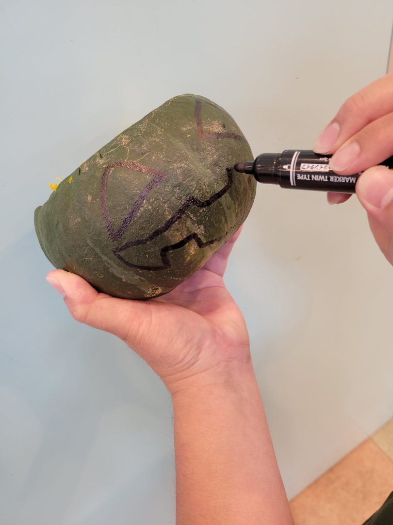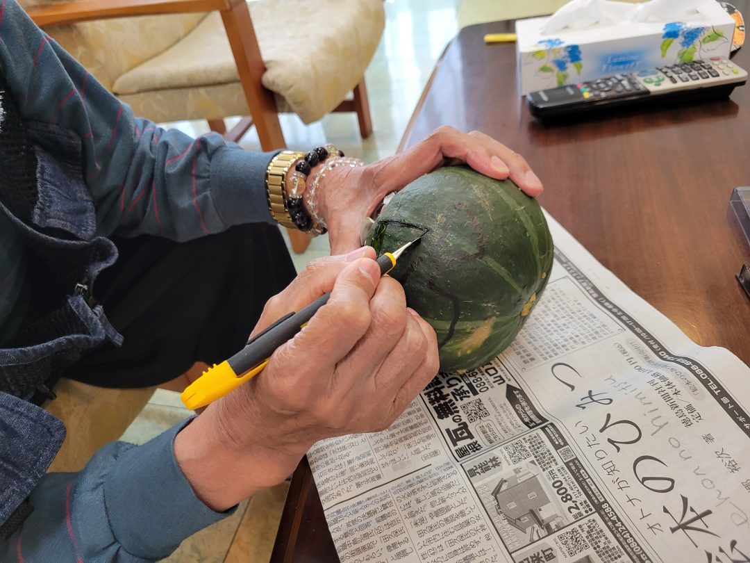 (包丁で切った方が早いですが、皮をハロウィンの飾り🎃に使うので今回は、
