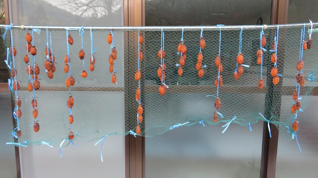 次にビニール紐に繋げていきます。皆さん、すごく上手ですね😲