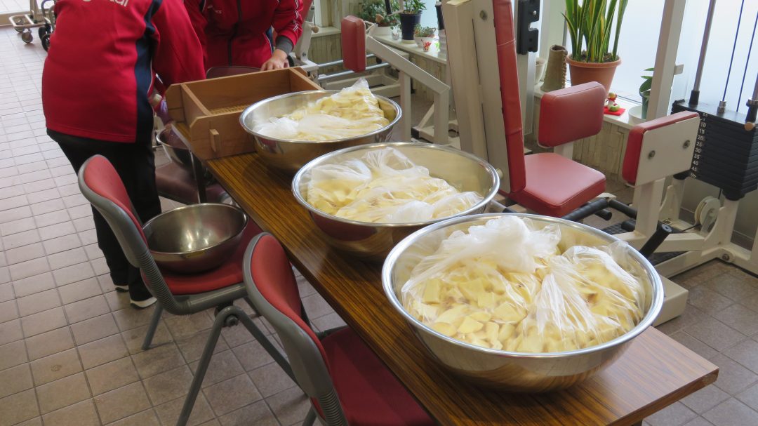 写真の食材はイモ餅に使用するさつまいいもを切ったものです。🍠