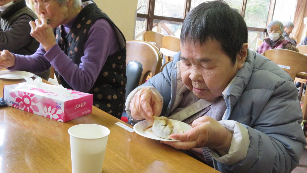 施設に持ち帰ったお餅を利用者様に召し上がっていただきました。😜
