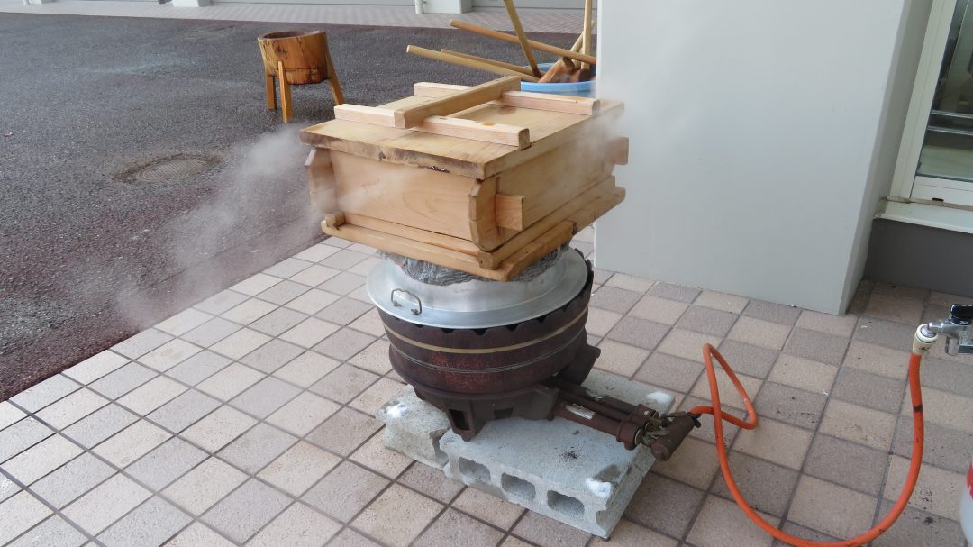 蒸しあがったら、杵と臼を使ってお餅をついていきます。💪