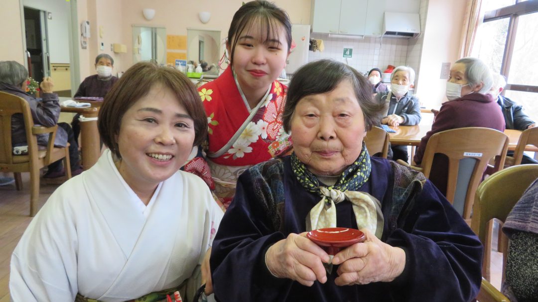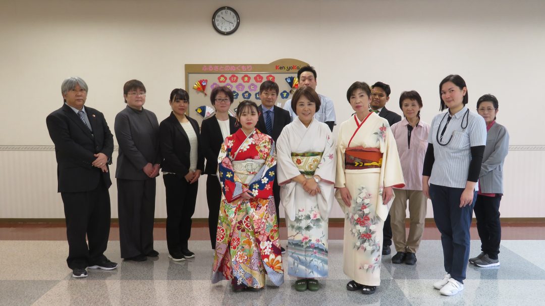 いつもとは違う、職員の晴れ着にニッコリ😜