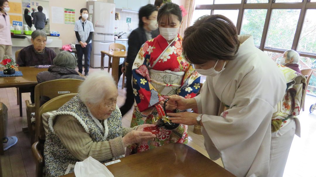 いつもとは違う、職員の晴れ着にニッコリ😜