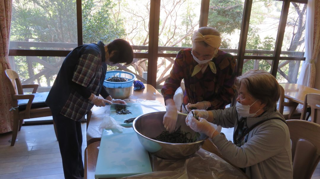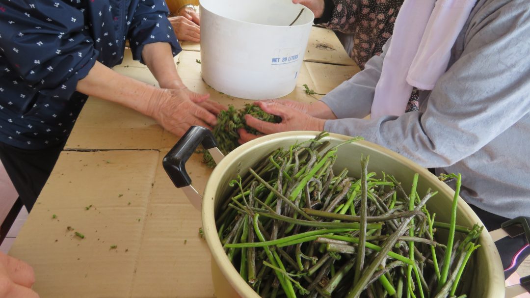 採ってきたわらびを使って施設で「わらびの卵とじ」を調理し、皆さまで春の味覚を楽しみました。わらび採りに参加できなかった利用者様にも召し上がっていただき、行事の楽しみを皆で分かち合うことができました。