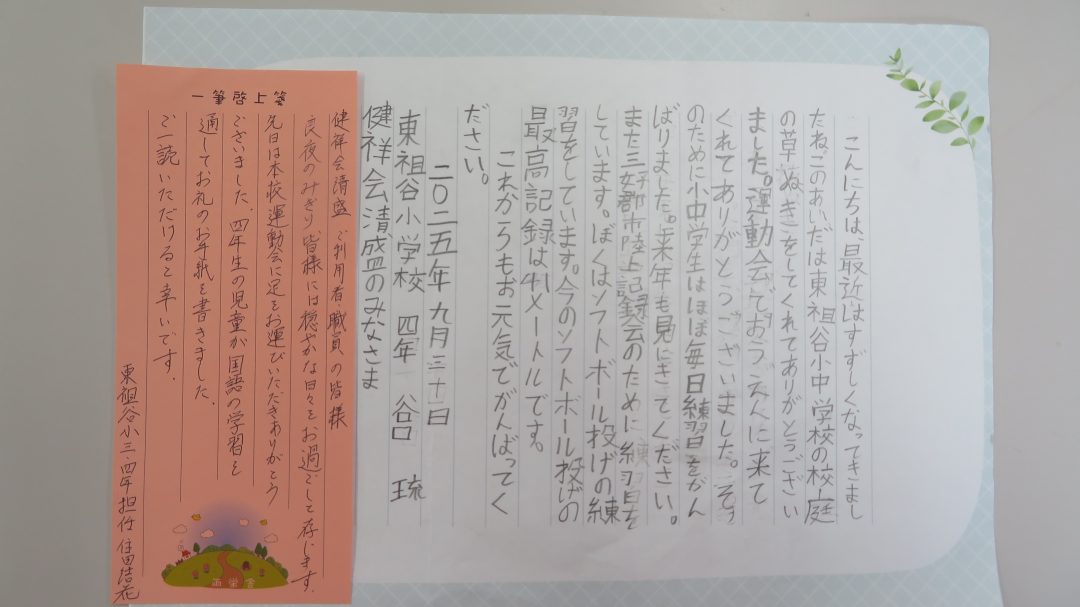 運動会の数日後、一通のお便りが届きましてので、ご紹介します😁