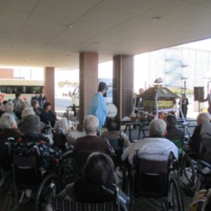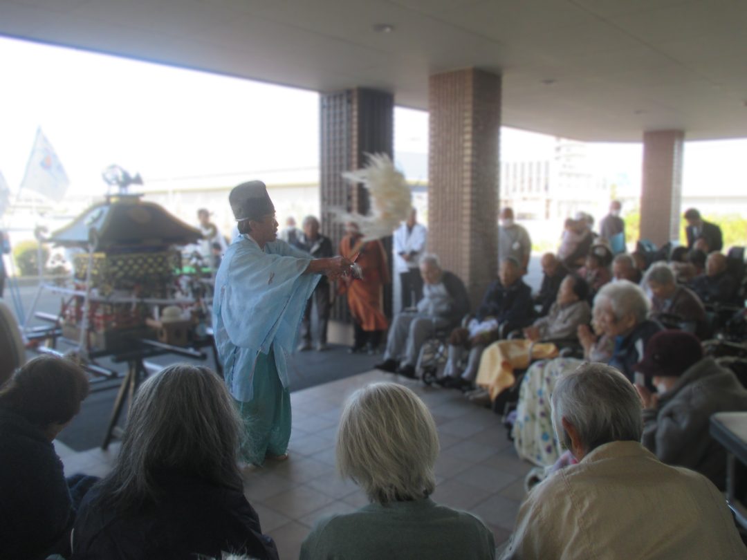 荒神社の御神輿は毎年施設に来ていただいており「今年も御神輿来てくるんかなぁ」「ありがたいなぁ」と入居者の皆様も楽しみにされており、多くの入居者様が参加されました。