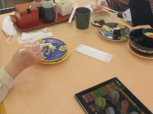 職員と一緒にメニューを見ながら好きなお寿司を注文します🍣