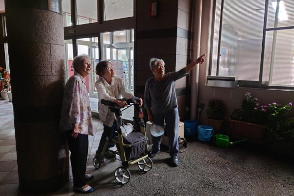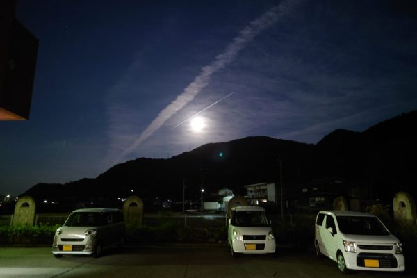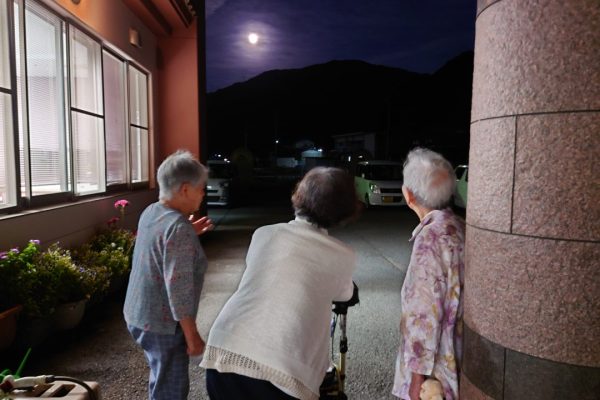 夕食後には玄関先へ出て、見事な月🌕を入居者さまと一緒に眺めました。
