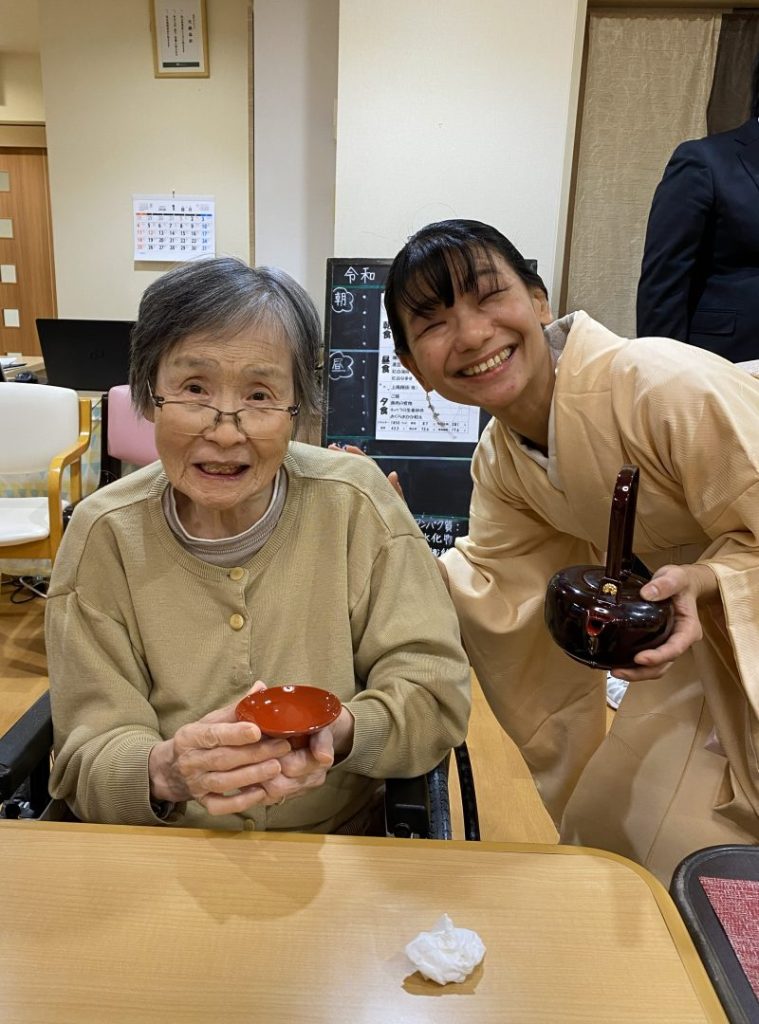 お屠蘇配りを行いました。おひとりずつ新年のご挨拶をして、注いでいきます。