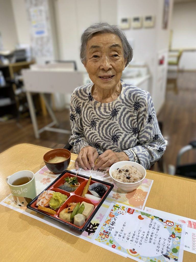 昼食はおせち料理です!厨房さんが腕を振るってくださいました。白みそのお雑煮は京都ならではです。