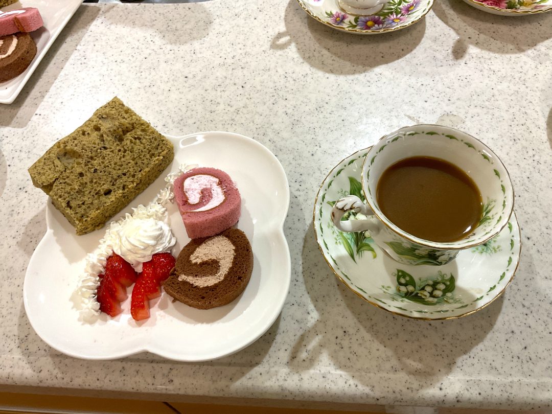 3Fの誕生日レクにて。施設のおやつ「抹茶蒸しパン」にアイスやフルーツ、ホイップにゆで小豆をトッピング。かなりのボリュームになりましたが、皆さんあっという間に完食されました。気温が高い日でしたので、ちょうどよかったです🍓😋