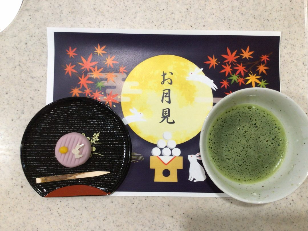 今月は、満月とうさぎの形をした練り切りを提供し、「可愛いね」「中秋の名月やもんな」と秋らしさや季節感を感じて下さっていた。抹茶のご希望も多くあり「久しぶりに抹茶を飲んだわ」ととても好評でした。和菓子に合わせてイラストをお配りしているが、それも1つ楽しみにされている方が多く喜ばれています。