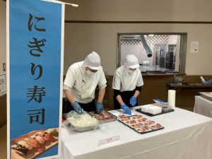 会場には、握り寿司や揚げたての天ぷらなど、食欲をそそる