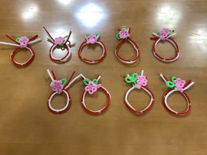 今回は、カラフルなモールとキラキラ輝くビーズを組み合わせて、オリジナルのお正月飾りの製作に挑戦していただきました。