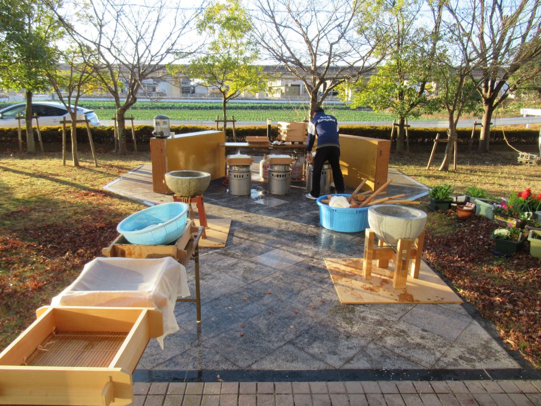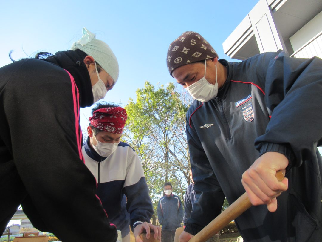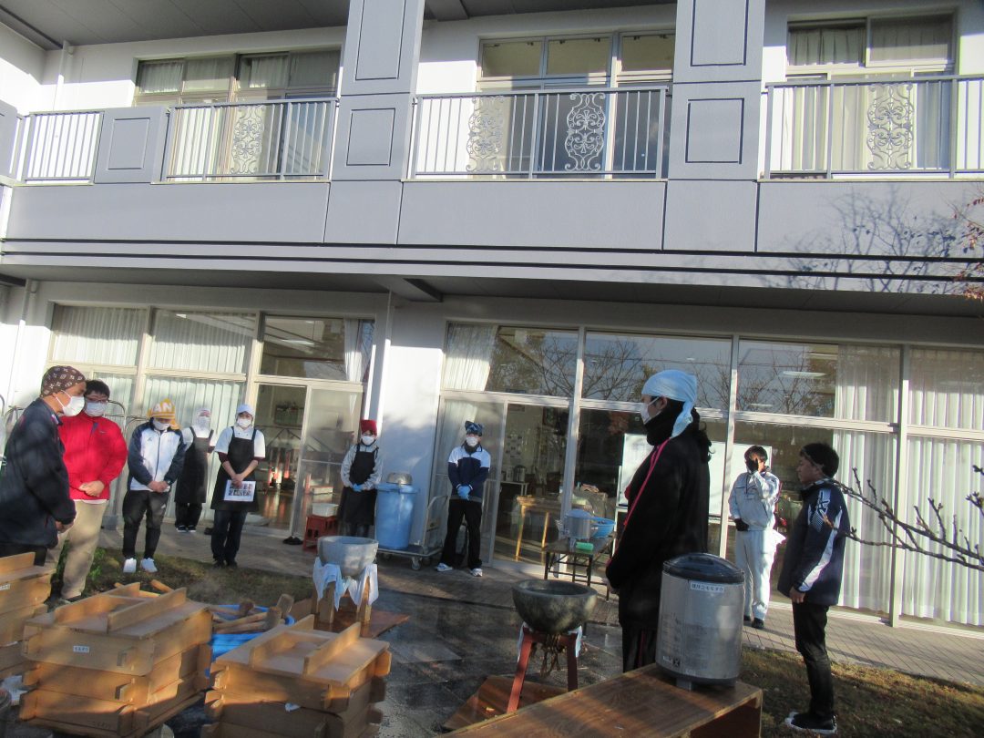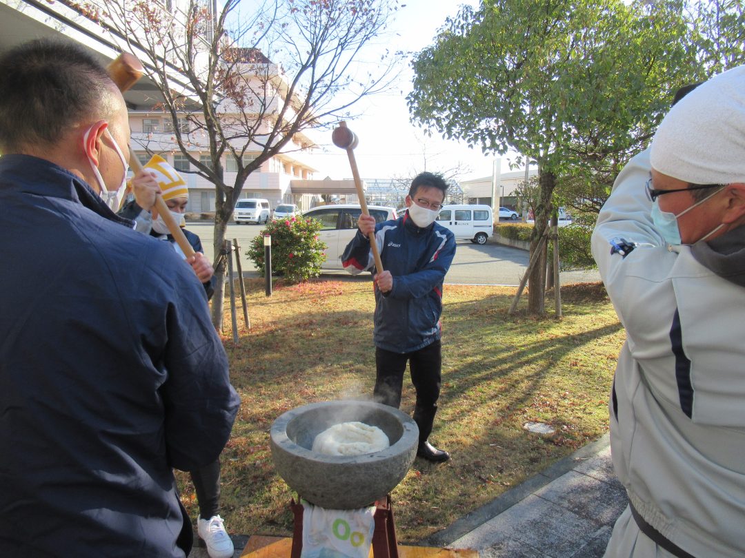 障害者支援施設 健祥苑 三並施設長も負けじと、他の職員さんと息を合わせながら、お餅をついていただきました。
