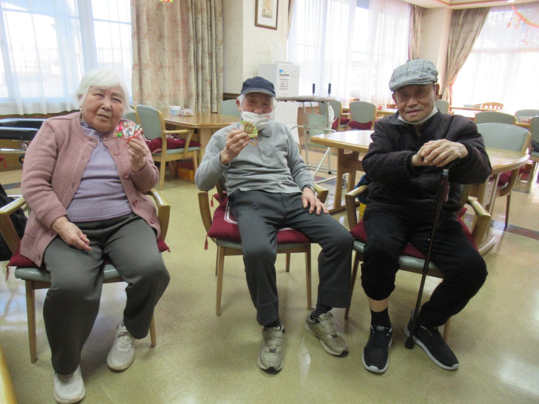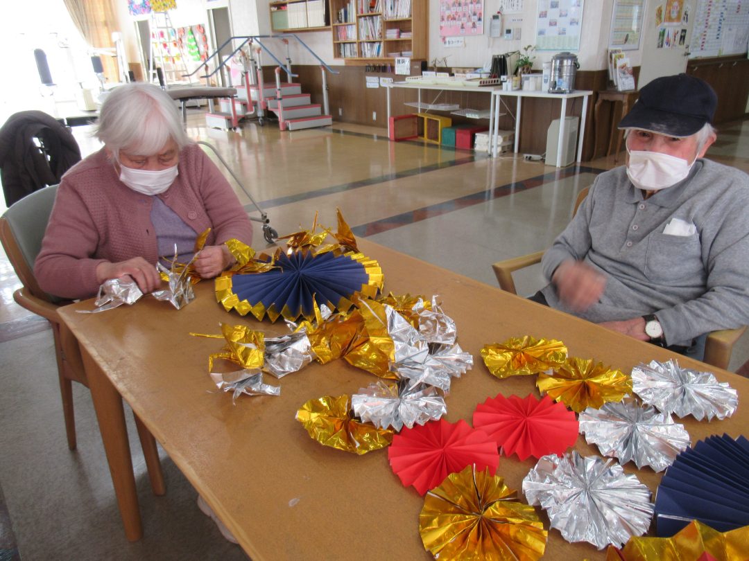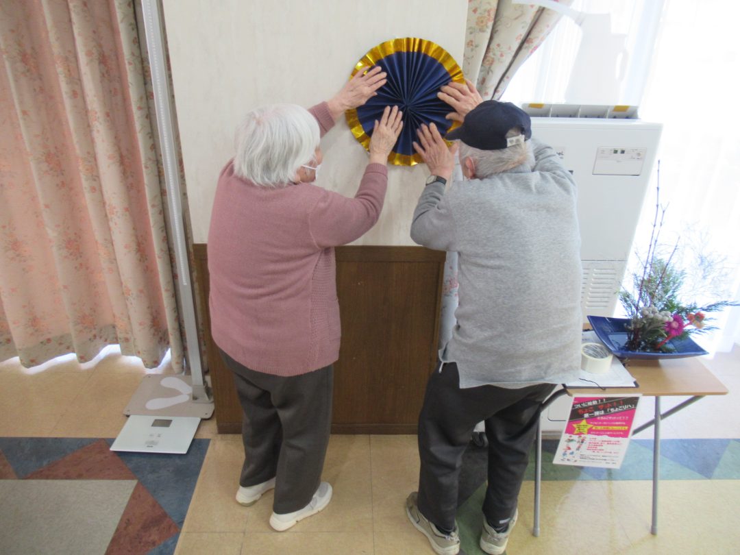 壁が華やかになり、「お正月らしくなったね」と利用者様に好評でした。